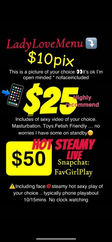 📲 STRICTLY ONLINE SLUT PLAY !!!! (I get busy sometimes TXT 4 faster Reply) 💋Tell me what’s on your MENU ⬇ 💲10 personal pic 💲25 steamy video 💲50+ Live SLUT PLAY (Nice2meetyou) 💰 CashApp/ APPLE 👻: FavGirlPlay 💋I’m looking to become your discreet favorite please don’t ask to meet up or to send free photos you will be blocked .. I’m Ready
