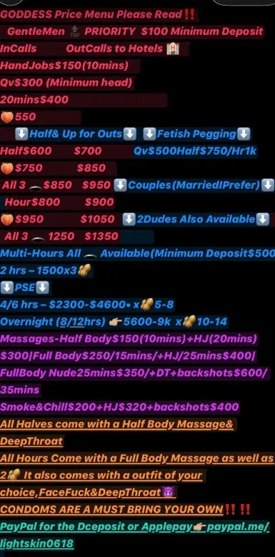 more. ⤴More Detailed Menu& Pricing is on my TRYST profile⬆