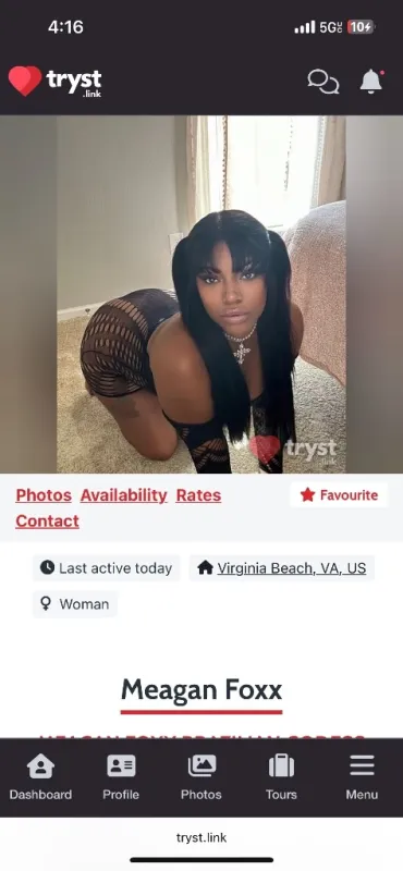 I will be arriving today in town at 12 PM noon! All outcalls require a deposit no exceptions of $25! PLEASE READ! 💋 Meagan — Your Upscale Escape 💋 ✨ Slim-thick • Classy • 100% Real ✨ Discreet • Independent • Verified 🍯 Incalls/Outcalls Available 💎 Fetishes + Pegging • Nuru • Golden Showers • More 🚫 No GFE • No BB • No Drama 🔐 Clean, private, and upscale — unforgettable vibes, never rushed. 📲 Text with: Name • Age • Race • Location • Date/Time Snapchat🗣@meaganfoxxva Instagram💙@Meaganfoxxva Twitter 🐦 @ MeaganfoxxVa OnlyFans 🔥 @meaganfoxx21 Erotic Monkey 🐵 @meaganfoxx19 WhatsApp / Telegram / FaceTime available for verification. ✅ Verified on OnDate ⭐ Mature gentlemen only — Me or Free